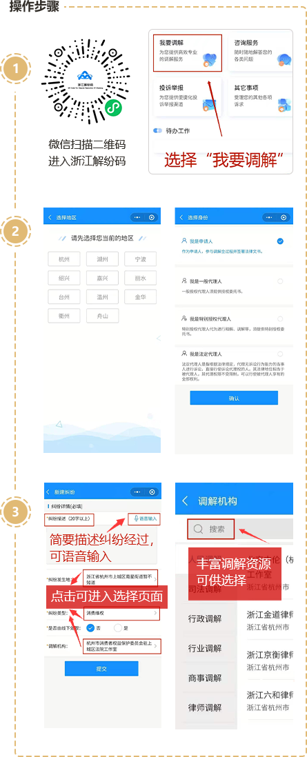 浙江解纷码(又称ODR平台)集咨询、调解、诉讼等功能于一体,是全国首个纠纷化解网络一体化平台,通过全程一站式专业服务,让老百姓在掌心里、指尖上就能解决纠纷,"调解优先,诉讼断后",遇到纠纷推荐首选浙江解纷码。